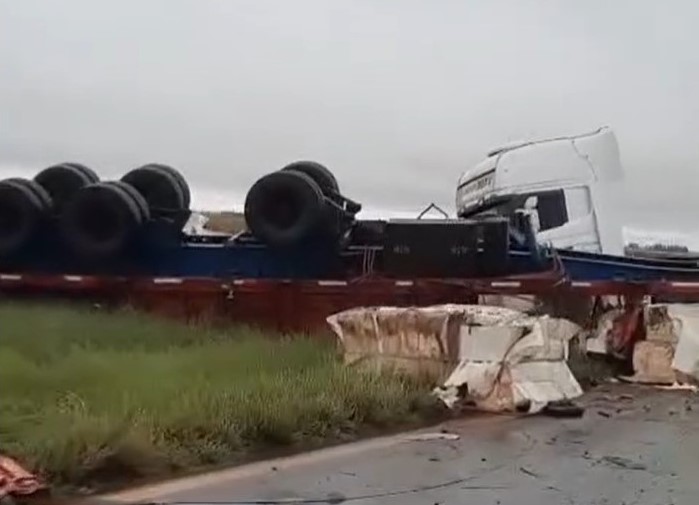 El accidente ocurrió alrededor de las 5:30, cuando por motivos que aún se investigan, el conductor perdió el control del vehículo, lo que provocó el desenganche y vuelco del acoplado, dejando la carga esparcida a lo largo de varios metros de la traza vial.