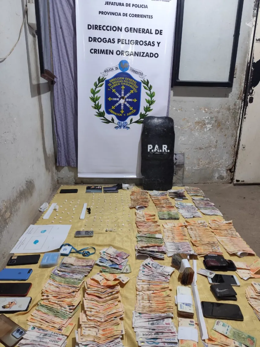 Efectivos de la Dirección de Drogas Peligrosas y Crimen Organizado de la Policía de Corrientes, con apoyo del Juzgado Federal N°1, desbarataron un kiosco narco en el barrio Quintana de la capital provincial. El operativo, realizado el sábado 12 de julio, incluyó un allanamiento en una vivienda ubicada en las calles 8 y Julio Verne, donde se detuvo a una pareja y se secuestraron 108 envoltorios de cocaína (43 gramos), $1.568.718 en efectivo, 12 teléfonos celulares, dos posnets de billetera virtual, una balanza de precisión, recortes de polietileno y un envoltorio con sustancia vegetal.